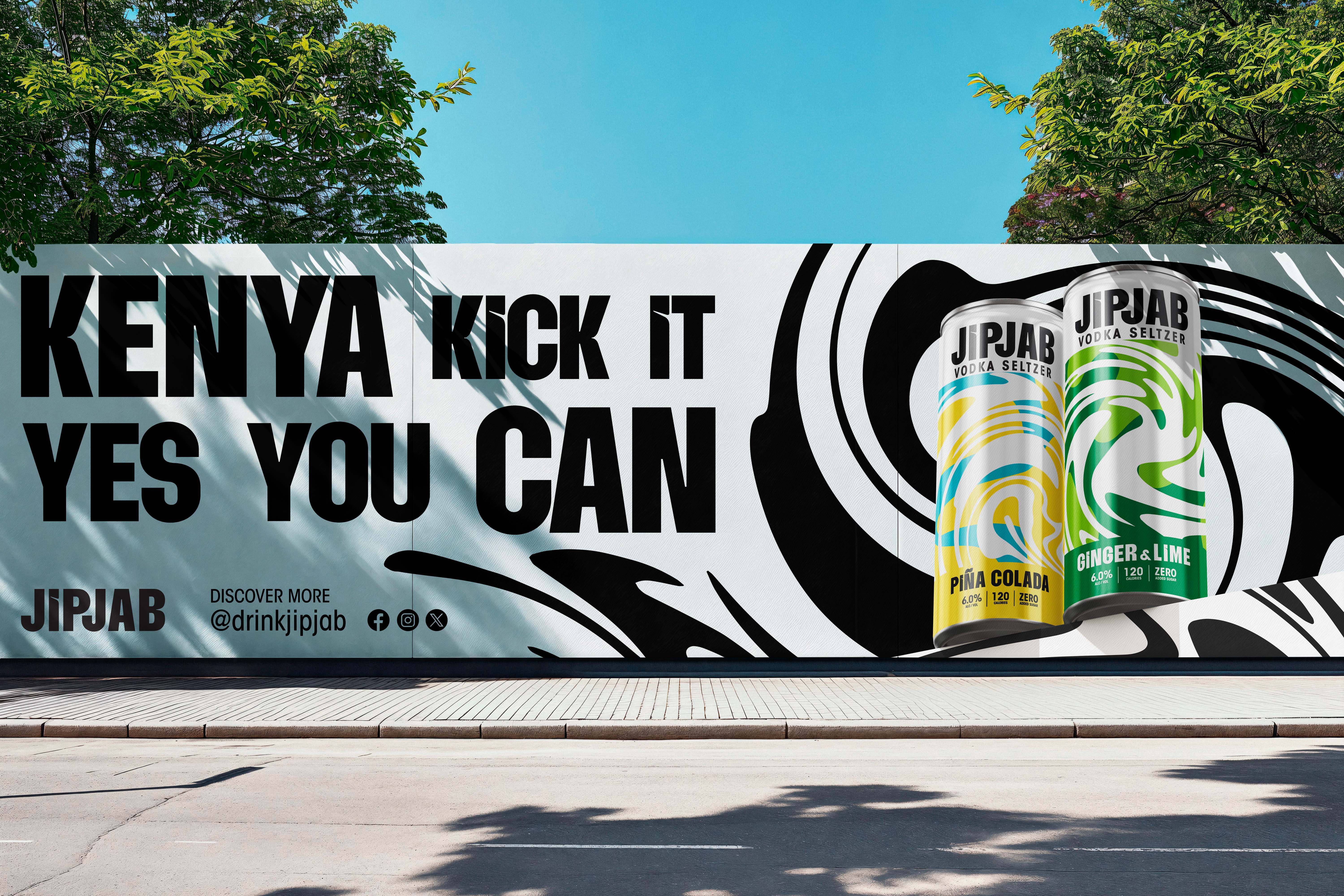 Packaging and design elements balance vibrancy with premium cues, ensuring appeal to a broad audience while maintaining shelf presence and memorability. The identity also supports adaptability across formats, from seltzer cans to spritzers, activations, digital campaigns, and events. It allows the brand to grow organically while remaining consistent in tone, colour and energy. This flexibility ensures that JIPJAB is both culturally relevant and aspirational, setting the foundation for a long-term presence in the Kenyan and East African beverage market.