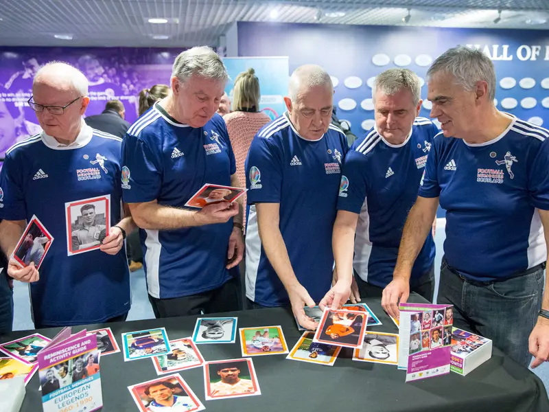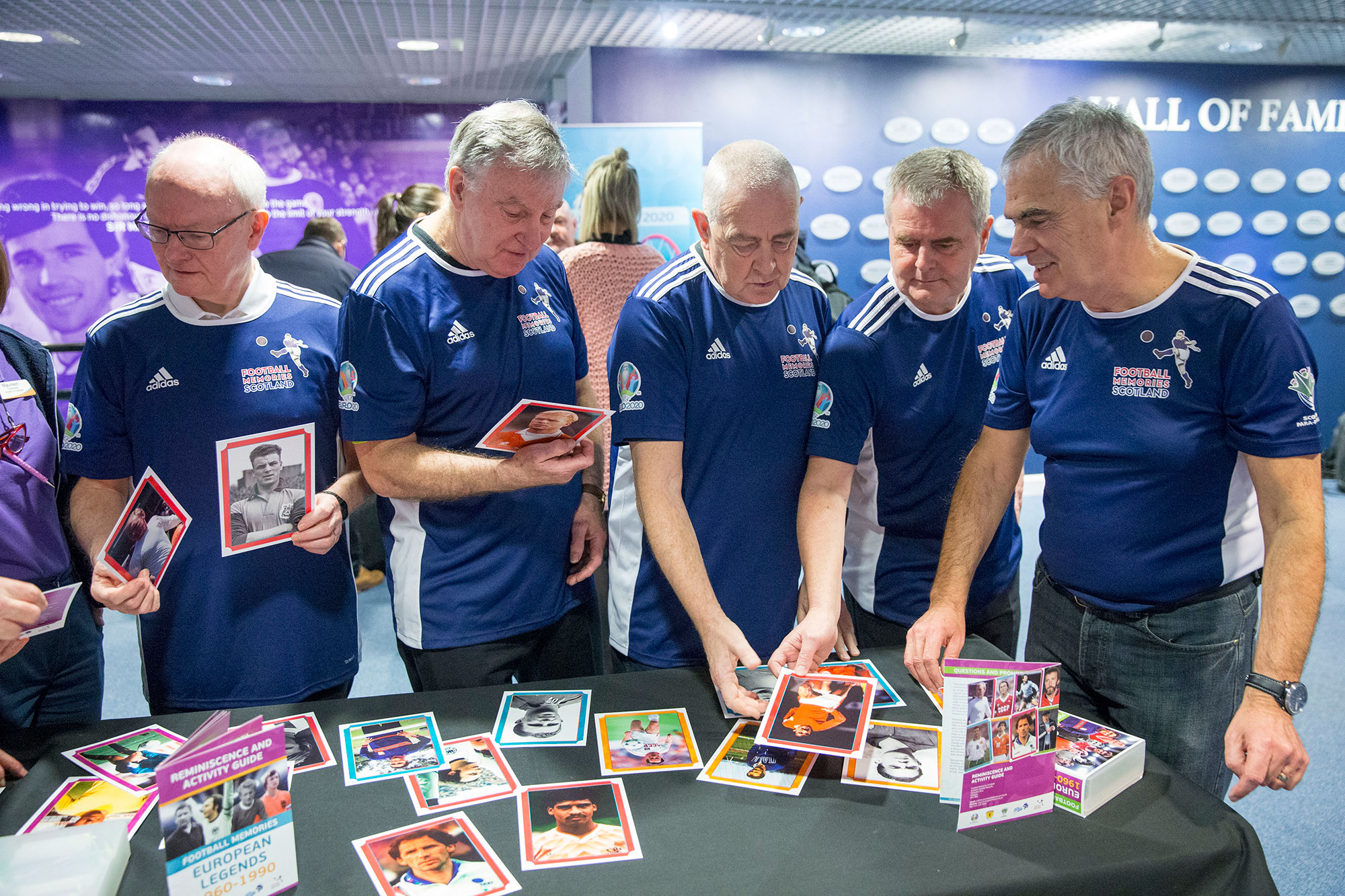 The Football Memories Scotland project, headquartered at Hampden Park in Glasgow, is a partnership between Alzheimer Scotland and the Scottish Football Museum. It is the oldest national football reminiscence programme in the world, supporting volunteers to spend time with football fans who are living with dementia, other forms of memory loss or who are experiencing loneliness, depression and social isolation. The groups use old football images, artefacts and sensory objects to stimulate memories and encourage discussions. The special European Legends cards not only aims to help Alzheimer’s and dementia sufferers but also community groups tackling social isolation and mental health issues.